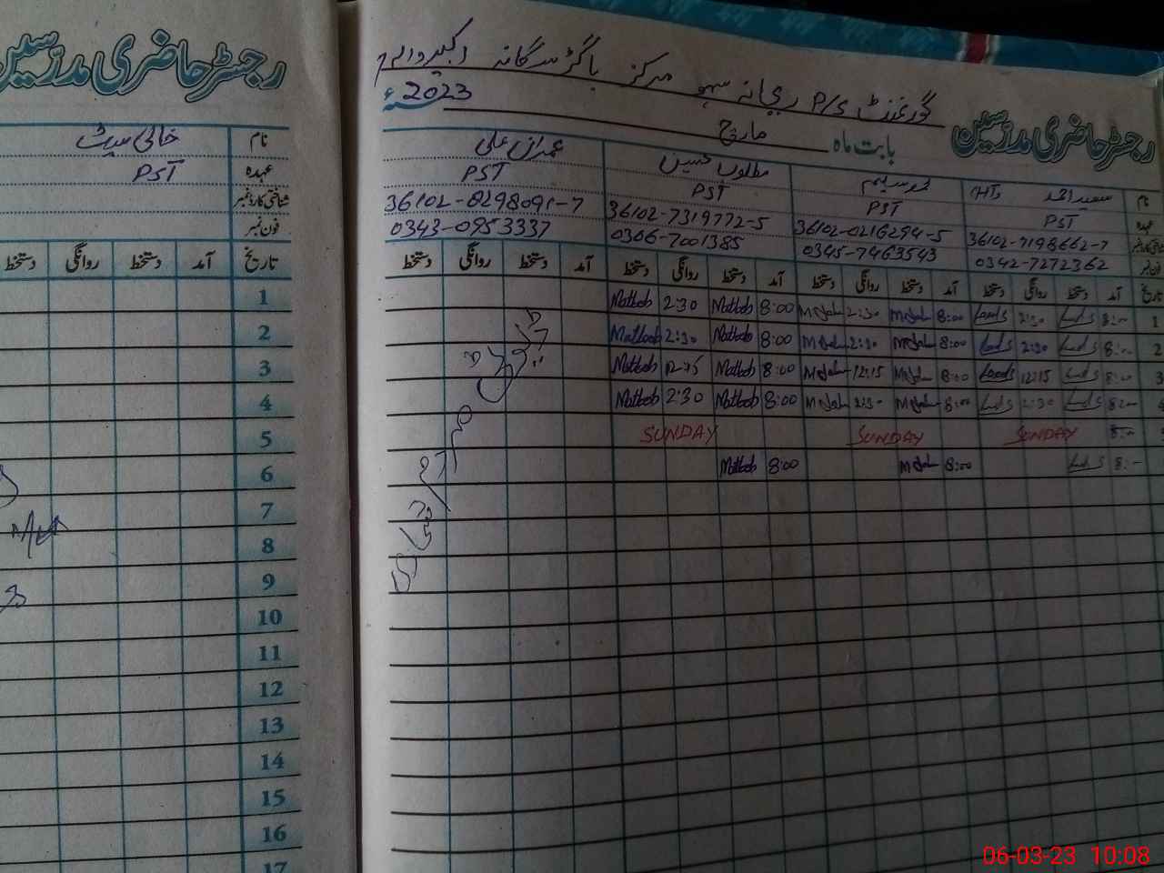 | Name: SA**** AH**** Designation: (School Headmaster's/Headmistress's) PST Phone/Cell Number: 03**** |