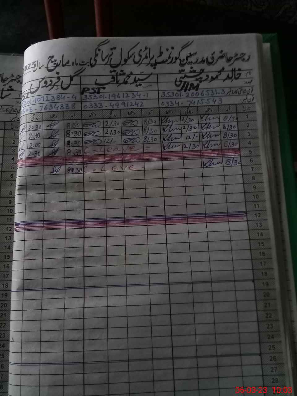 | Name: KH**** MA**** Designation: (School Headmaster's/Headmistress's) PST Phone/Cell Number: 03**** |