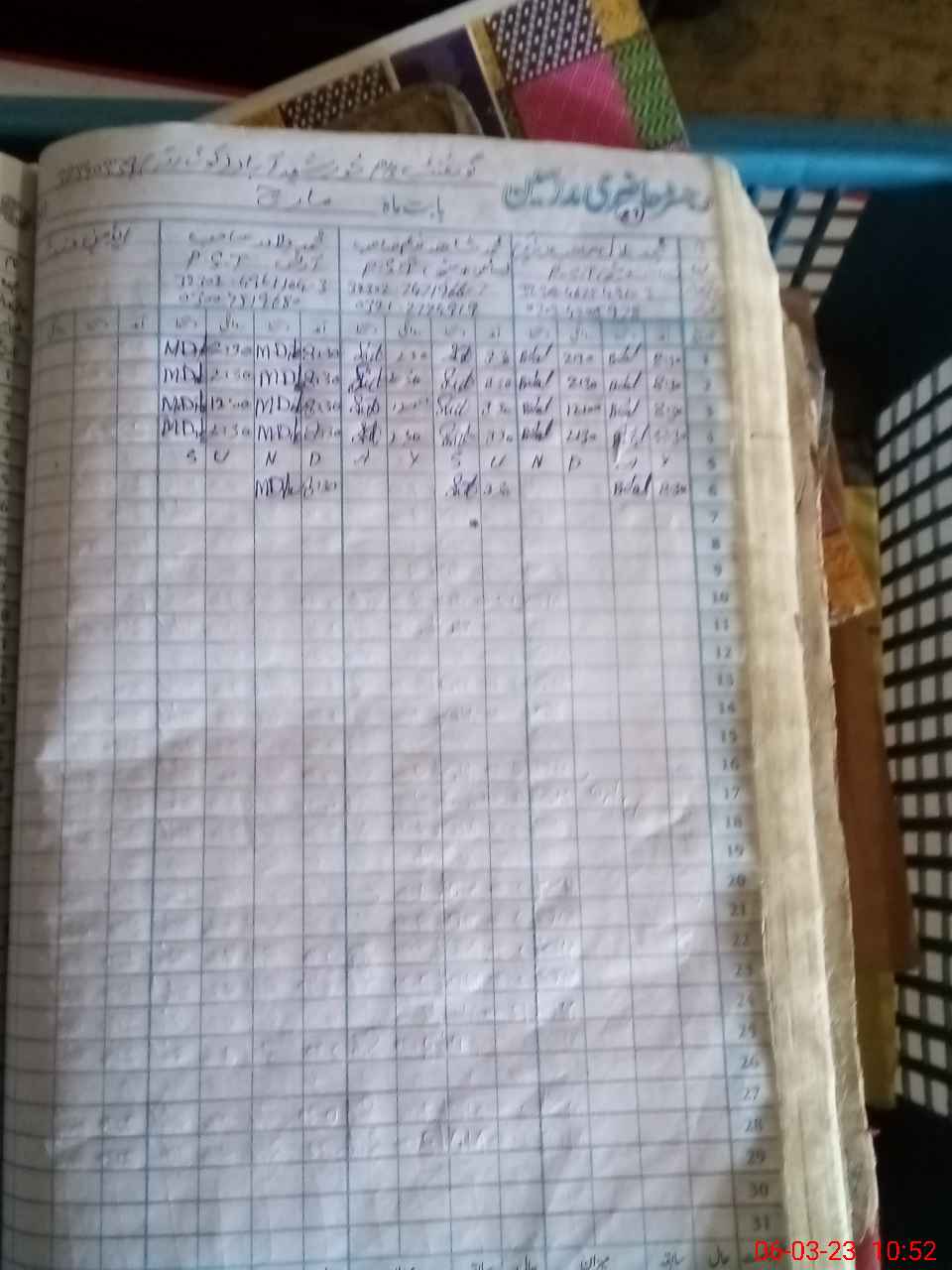 | CNIC | Full Name | Designation | R/C | Absence During Last Calender Month |