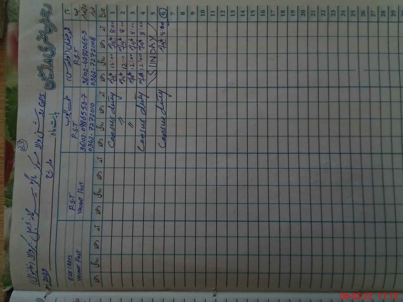 | Name: M.FA**** Designation: (School Headmaster's/Headmistress's) PST Phone/Cell Number: 03**** |