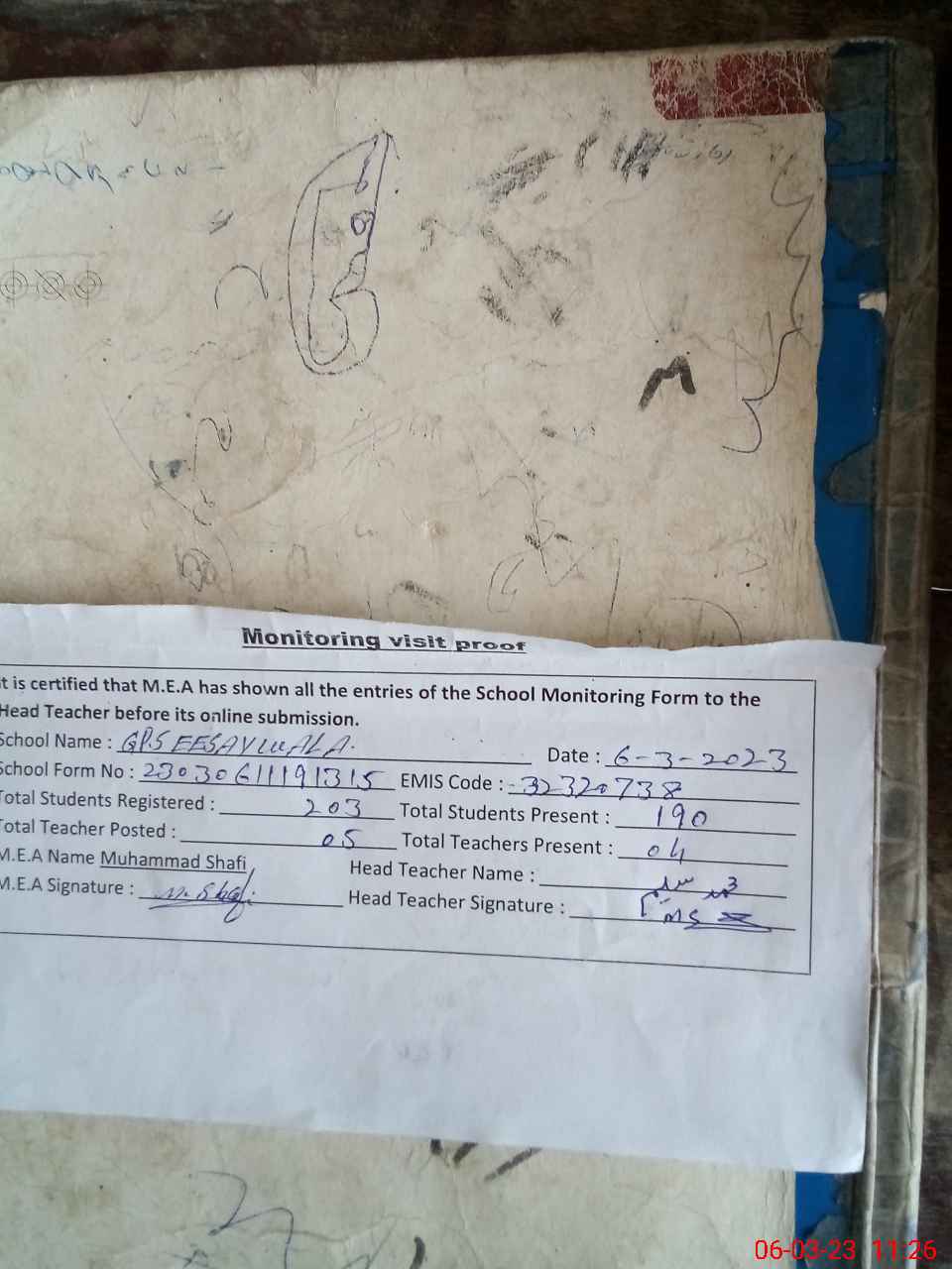 | EMIS Code: 32320738 | Name of School: GPS EESAY WALA | |||