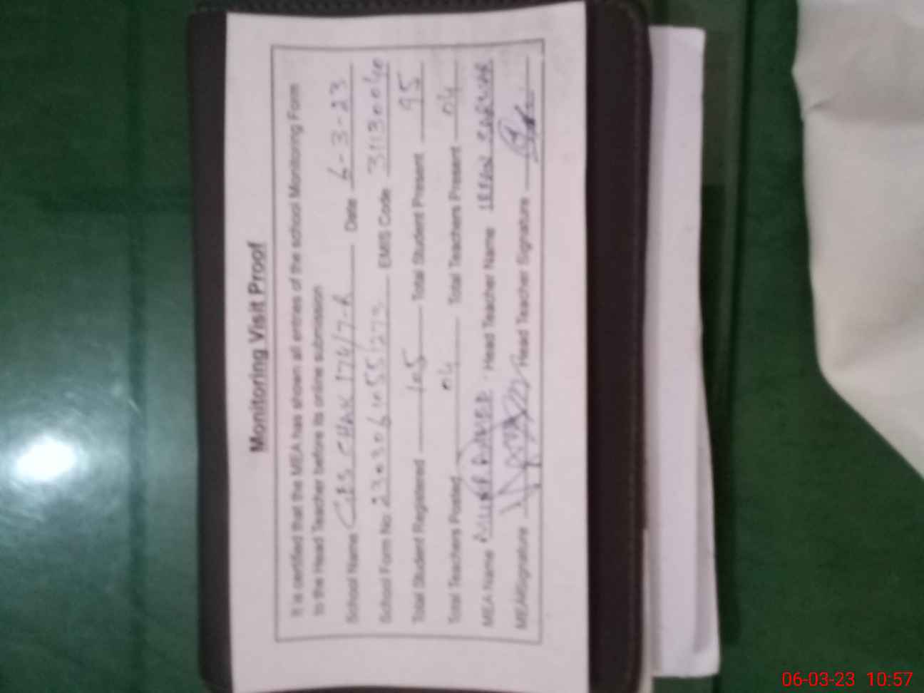 | EMIS Code: 31130040 | Name of School: GES CHAK 174/7-R | |||