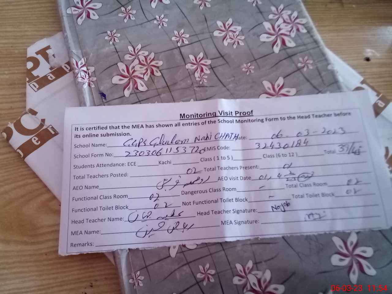 | EMIS Code: 32430184 | Name of School: GGPS GHULAM NABI CHATHA | |||