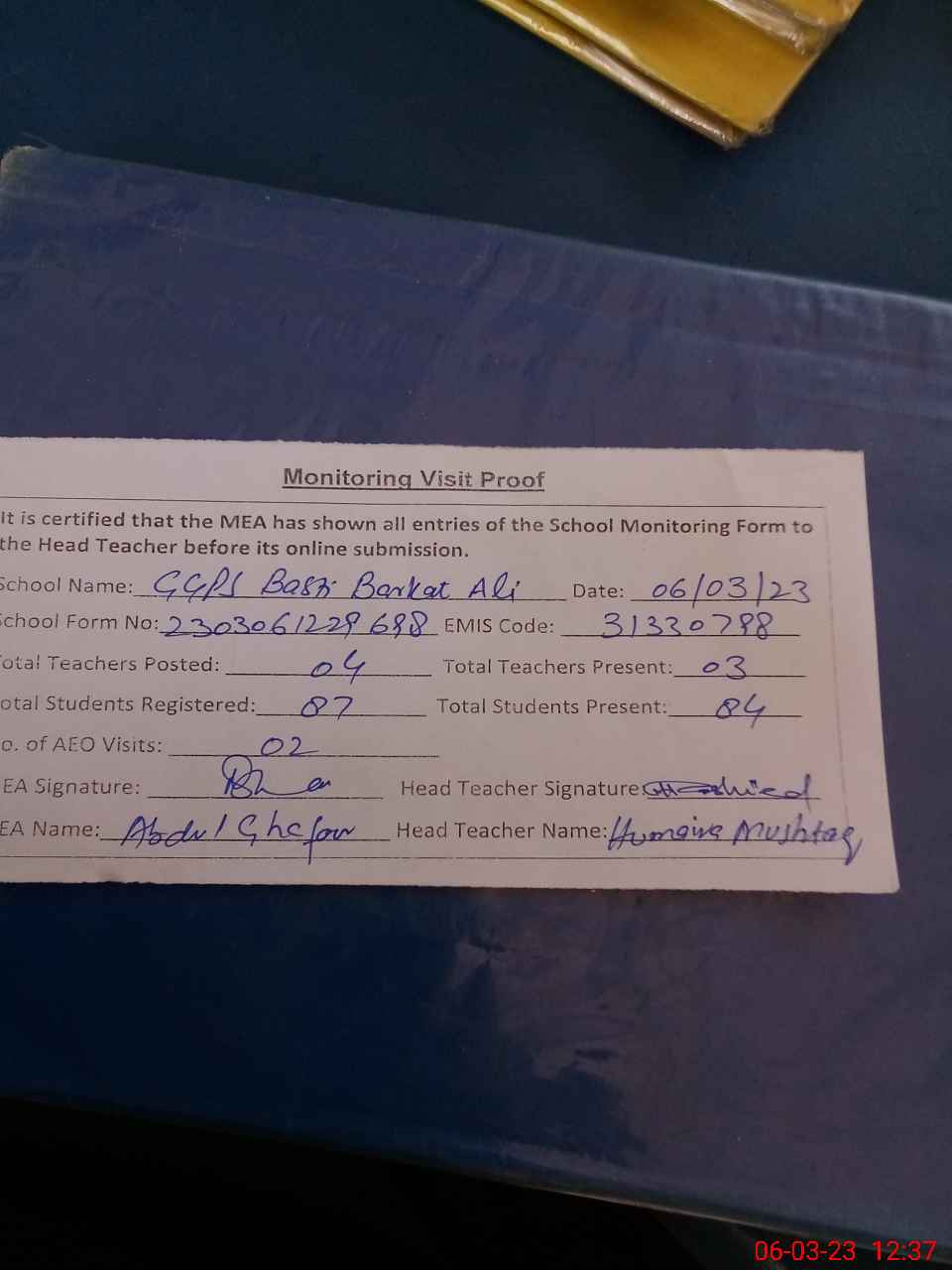 | EMIS Code: 31330798 | Name of School: GGPS BASTI BARKAT ALI | |||