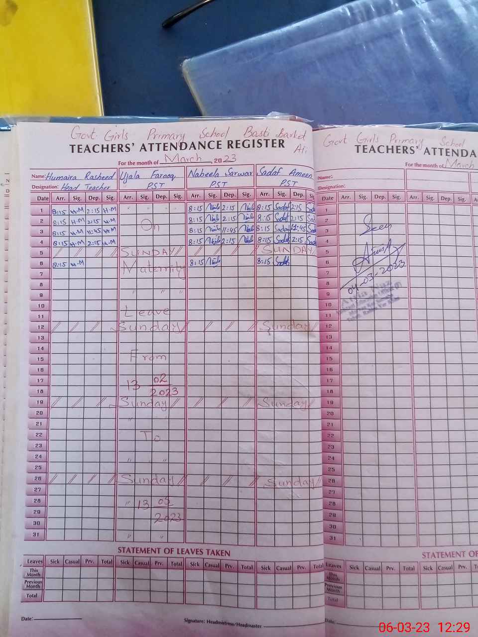 | Name: Hu**** Ra**** Designation: (School Headmaster's/Headmistress's) PST Phone/Cell Number: 03**** |