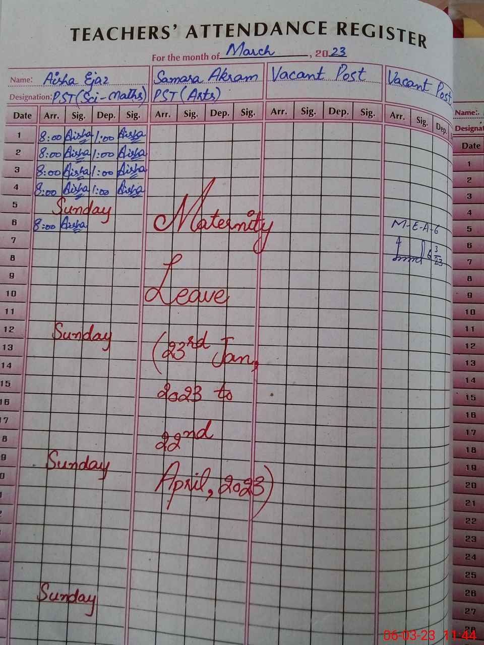 | 36**** | Sa**** Ak**** | PST | Regular | 0 | 0 | 0 | 0 | 0 | 0 | 0 | 0 | 0 | Maternity |