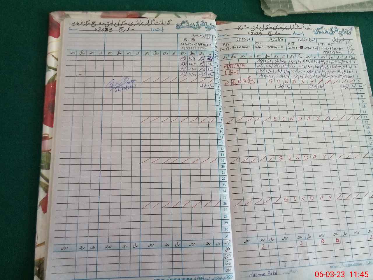 | 32**** | Fa**** Na**** | PST | Regular | 8 | 0 | 0 | 6 | 0 | 0 | 0 | 0 | 2 | Maternity |