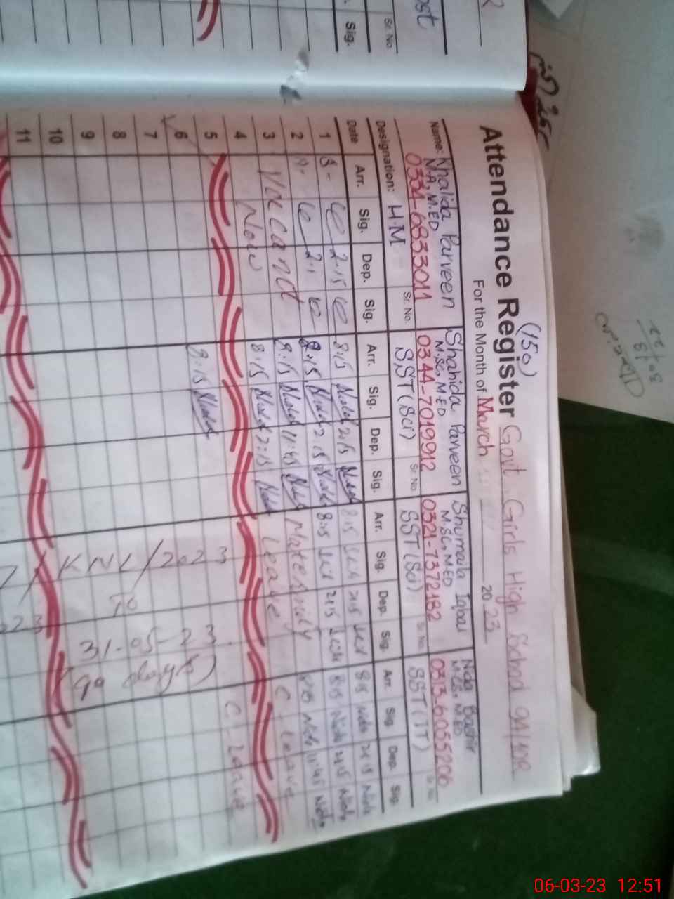 | Name: Sh**** Pa**** Designation: (School Headmaster's/Headmistress's) SST(Sc) Phone/Cell Number: 03**** |