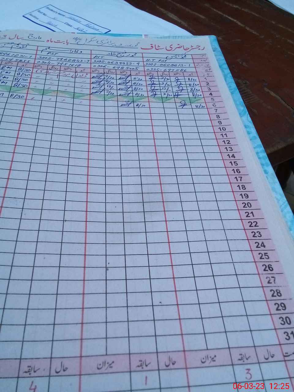 | Name: Ta**** Ha**** Designation: (School Headmaster's/Headmistress's) P S T Phone/Cell Number: 03**** |