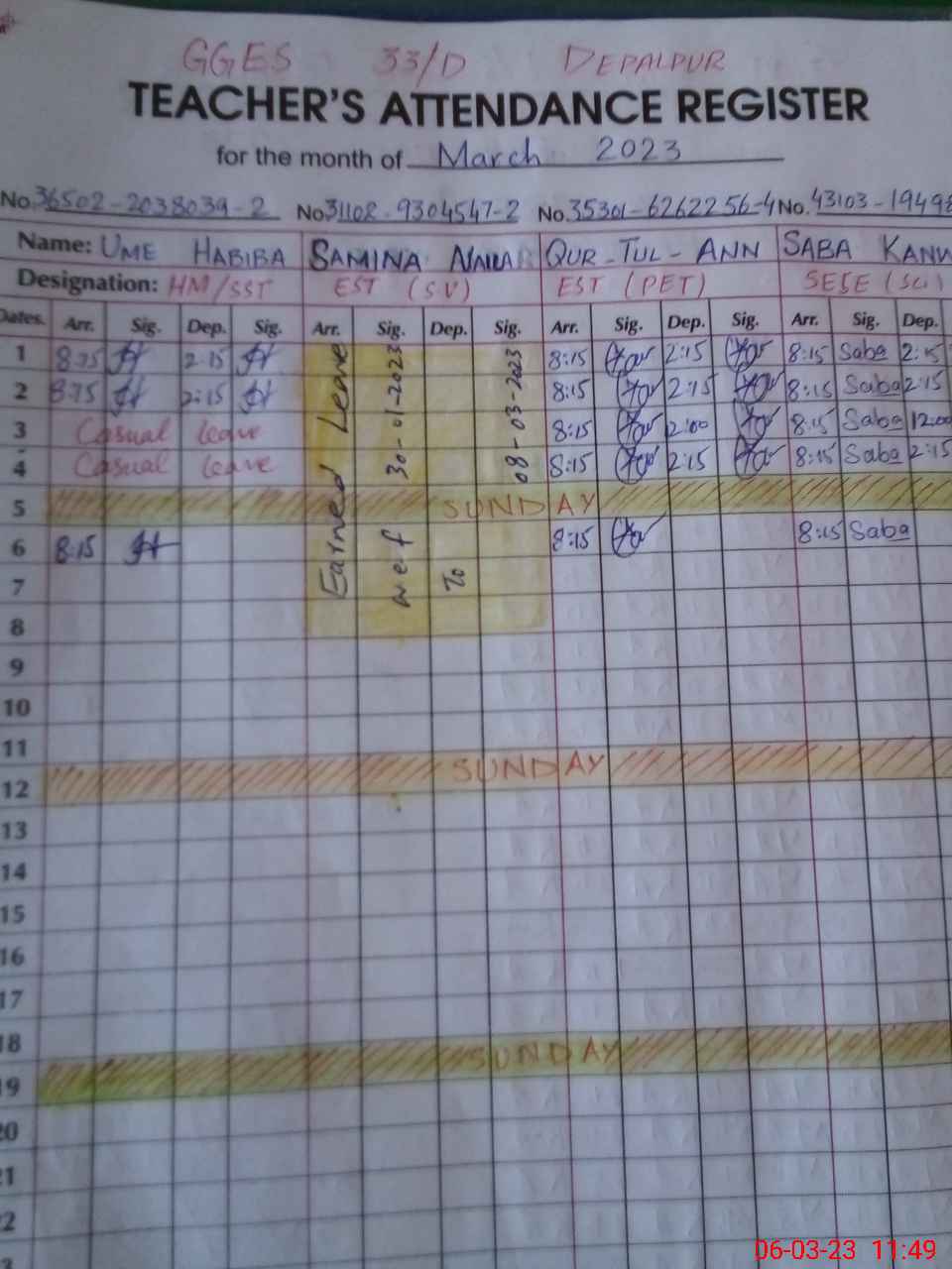 | Name: UM**** HA**** Designation: (School Headmaster's/Headmistress's) SST Sci Phone/Cell Number: 03**** |