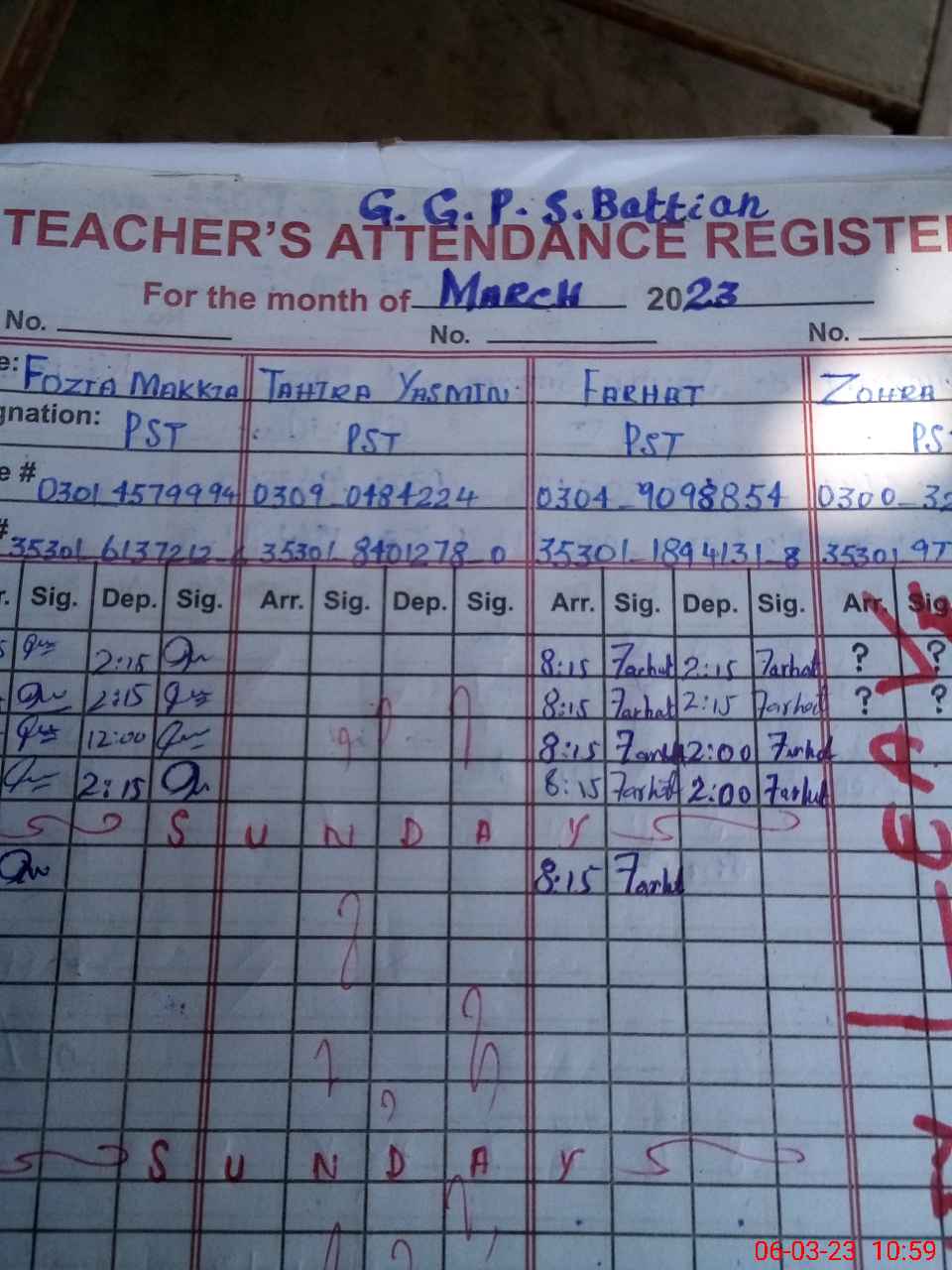 | Name: Ta**** Ya**** Designation: (School Headmaster's/Headmistress's) PST Phone/Cell Number: 03**** |