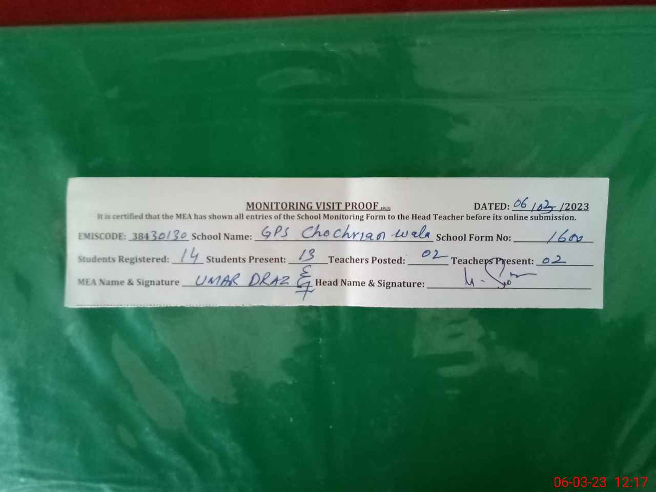| EMIS Code: 38430130 | Name of School: GPS CHOCHRIAN WALA | |||
