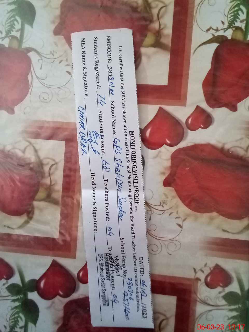 | EMIS Code: 38430100 | Name of School: GPS SHAH PUR SADAR | |||