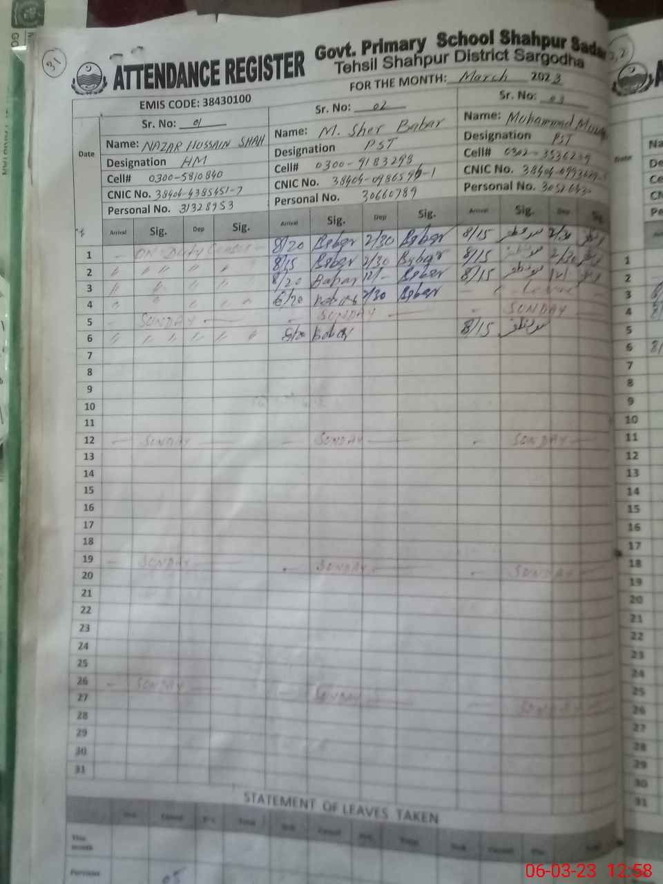 | Name: NA**** HU**** SH**** Designation: (School Headmaster's/Headmistress's) PST Phone/Cell Number: 03**** |