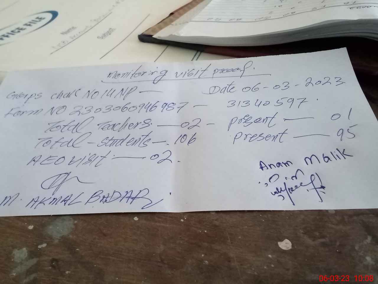 | EMIS Code: 31340597 | Name of School: GGPS CHAK 14/NP | |||