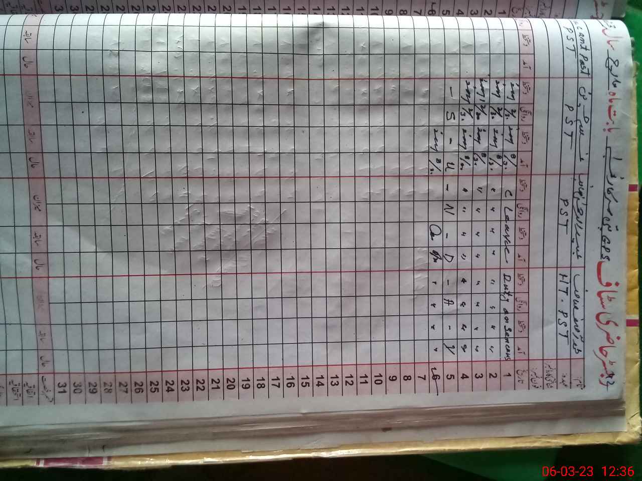 | CNIC | Full Name | Designation | R/C | Absence During Last Calender Month |