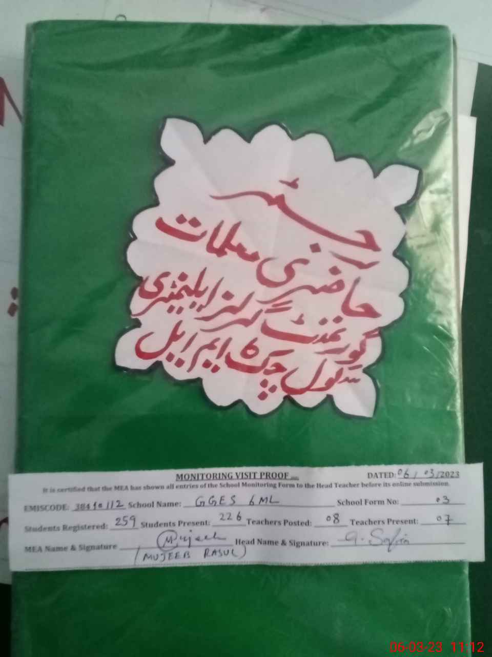 | EMIS Code: 38410112 | Name of School: GGES CHAK NO.6 ML | |||