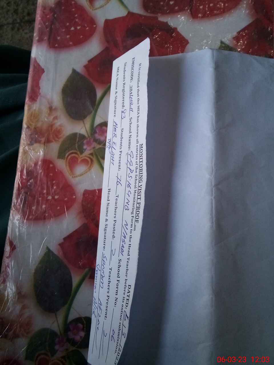 | Name: SH**** AF**** Designation: (School Headmaster's/Headmistress's) PTC/JV Phone/Cell Number: 03**** |