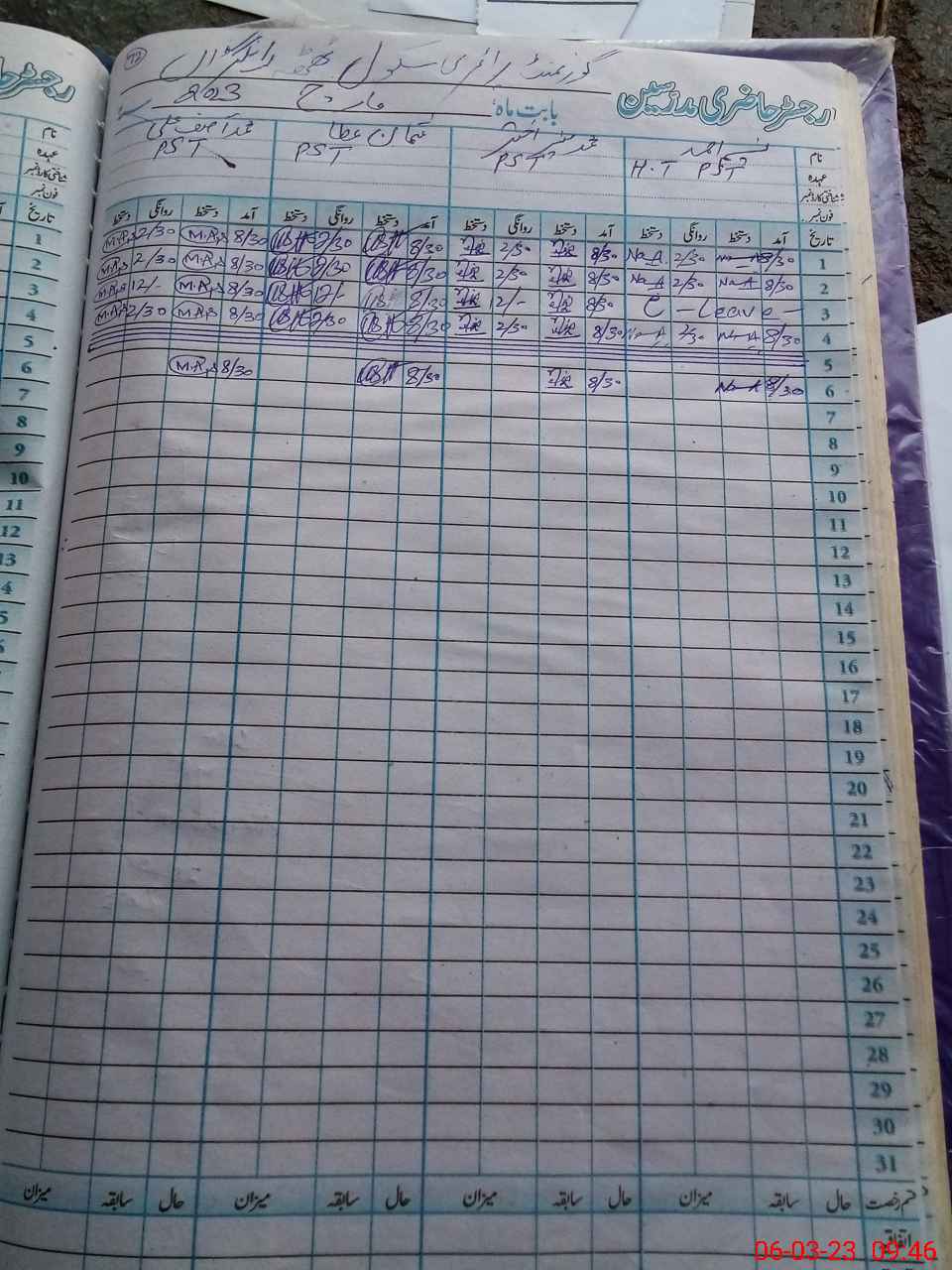 | CNIC | Full Name | Designation | R/C | Absence During Last Calender Month |