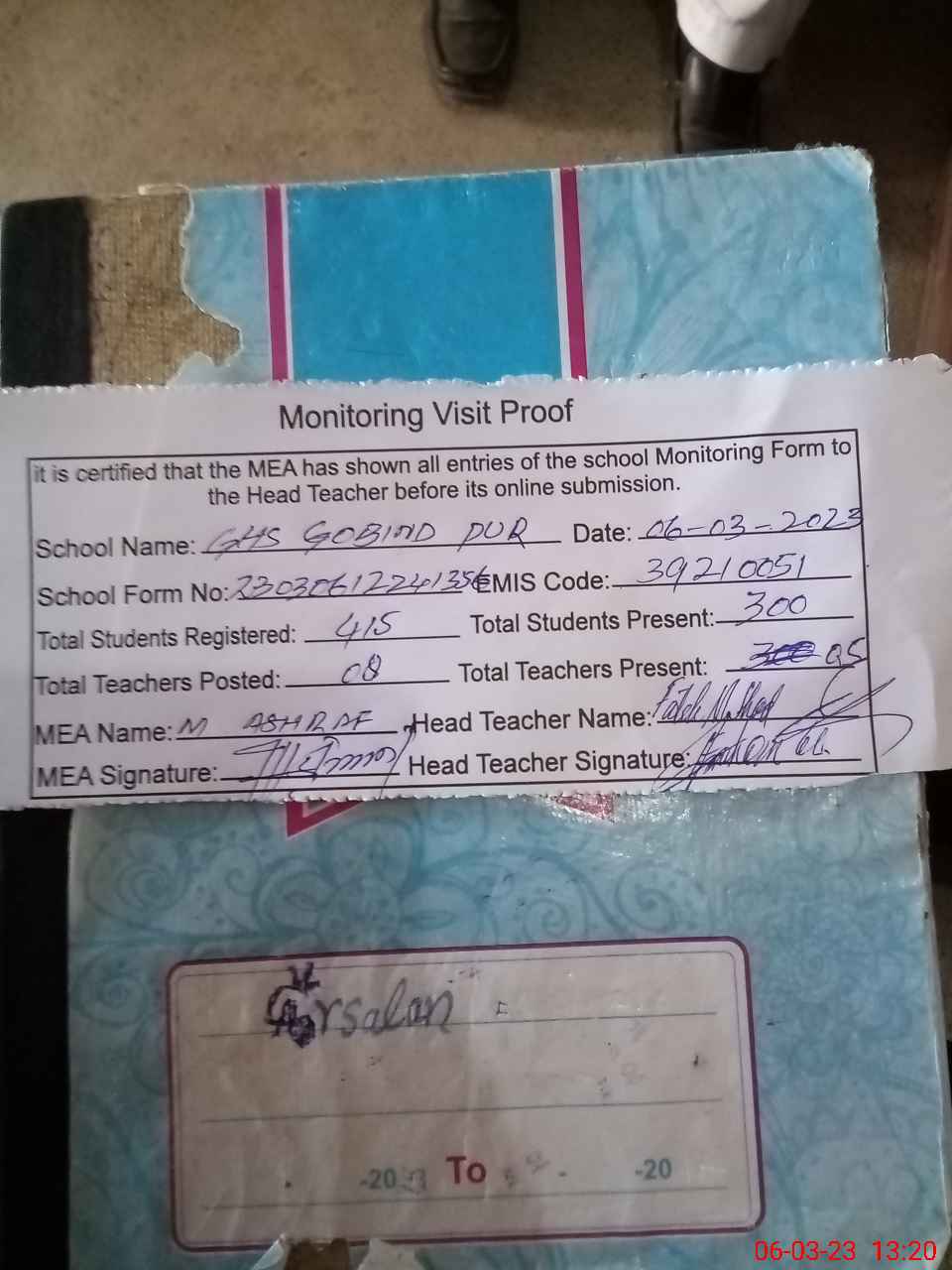 | EMIS Code: 39210051 | Name of School: GHS GOBIND PUR P/O GOBIND PUR | |||