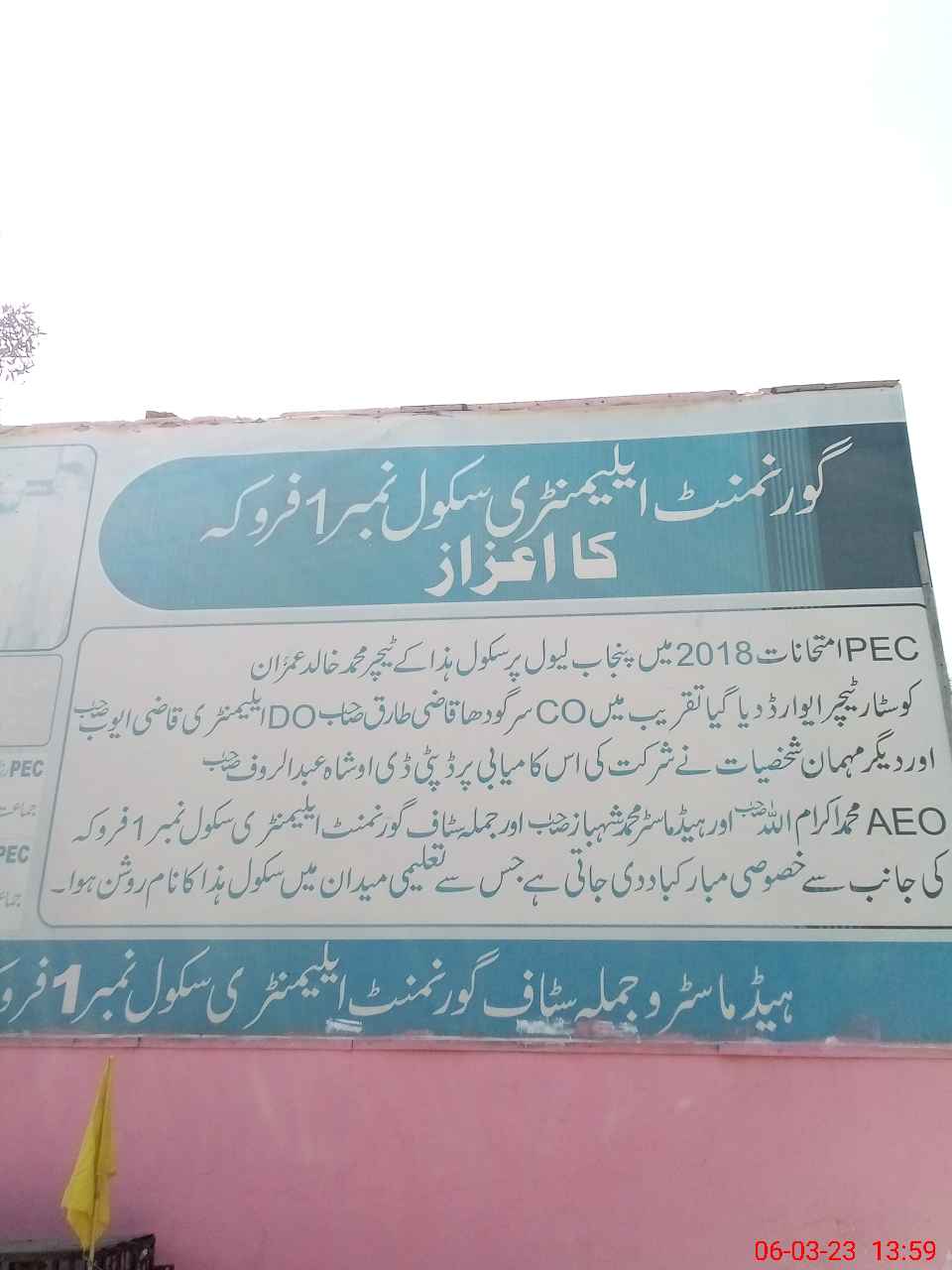 | District: SARGODHA | Tehsil: SAHIWAL | Markaz: FAROOQA - MALE | Level: Middle | |