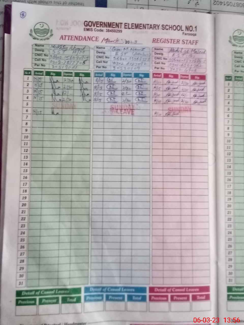 | 38**** | Qa**** Mu**** Na**** | Regular | 1 | 0 | 0 | 0 | 0 | 0 | 0 | 0 | 1 | Casual | |