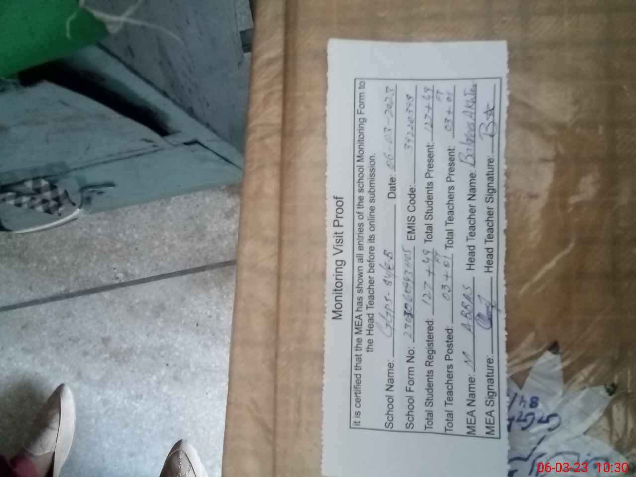 | Attendance Register | Head Teacher | MEA with School | Visit Proof |
