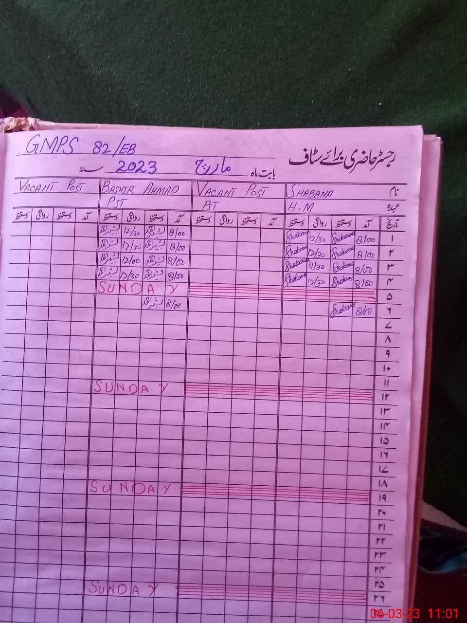 | Name: Sh**** Designation: (School Headmaster's/Headmistress's) PST Phone/Cell Number: 03**** |