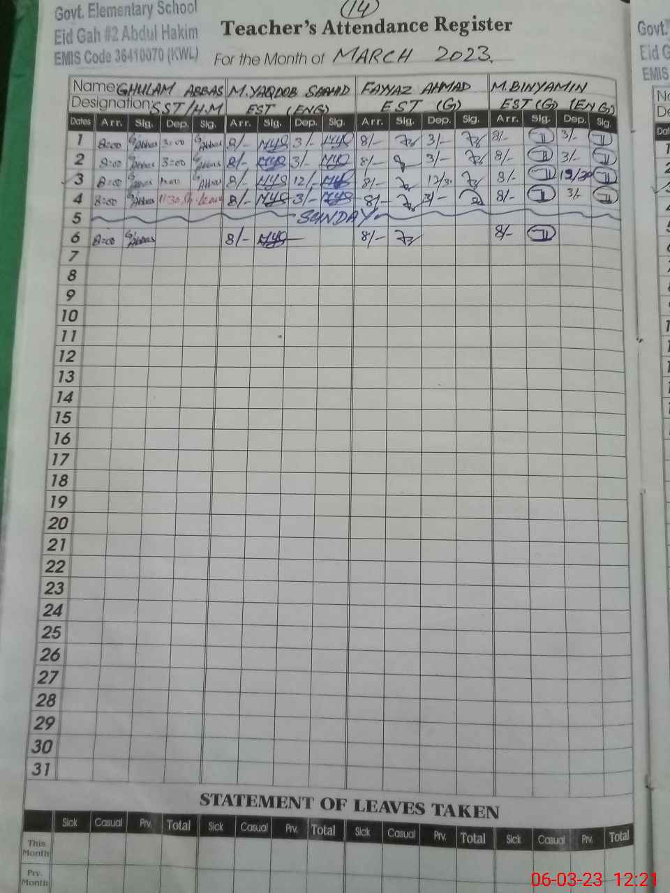 | 33**** | Hi**** Ka**** | ESE | Contract | 0 | 0 | 0 | 0 | 0 | 0 | 0 | 0 | 0 | Maternity |
