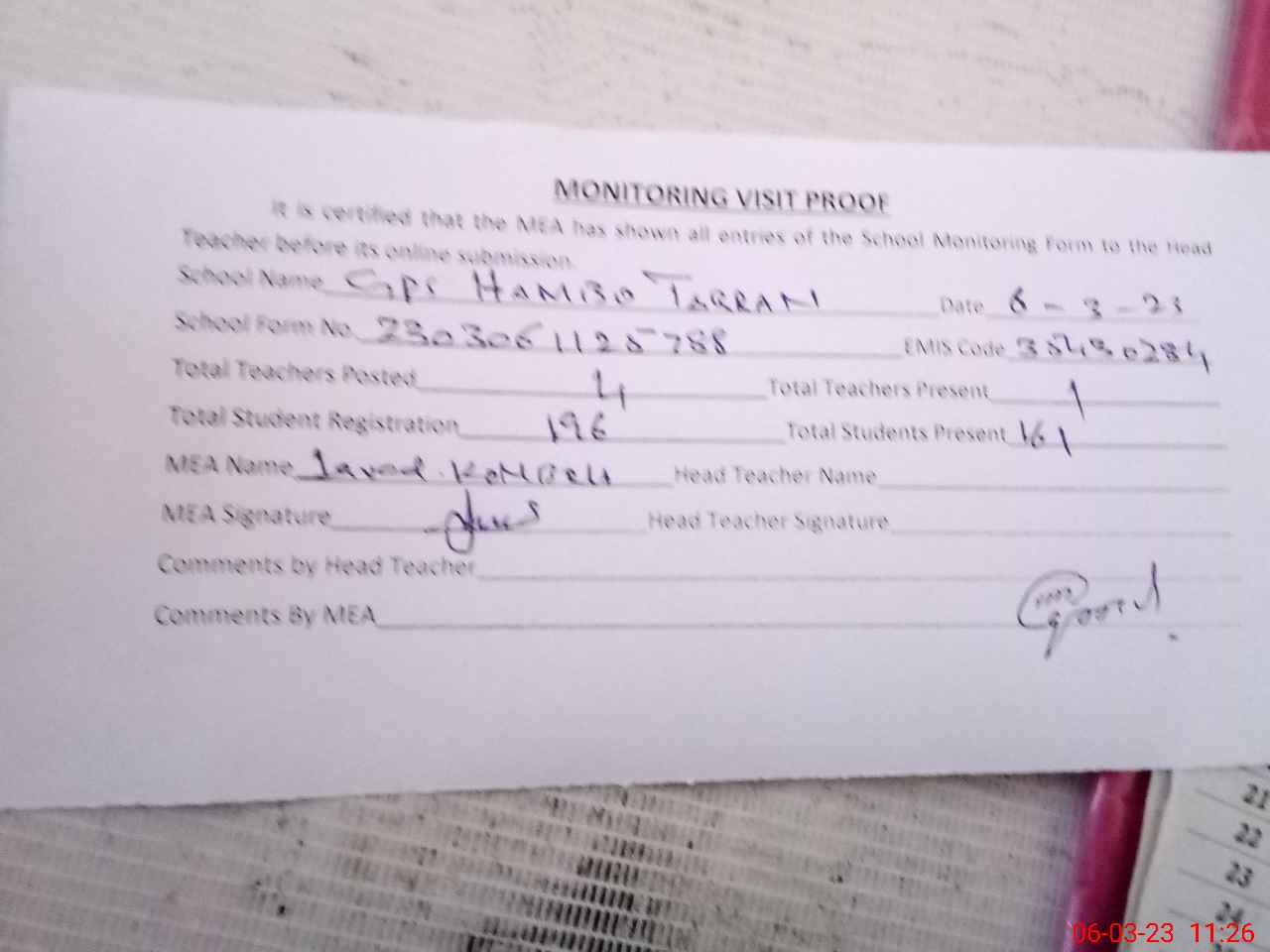 | EMIS Code: 35430284 | Name of School: GPS HAMBO TARRAN | |||
