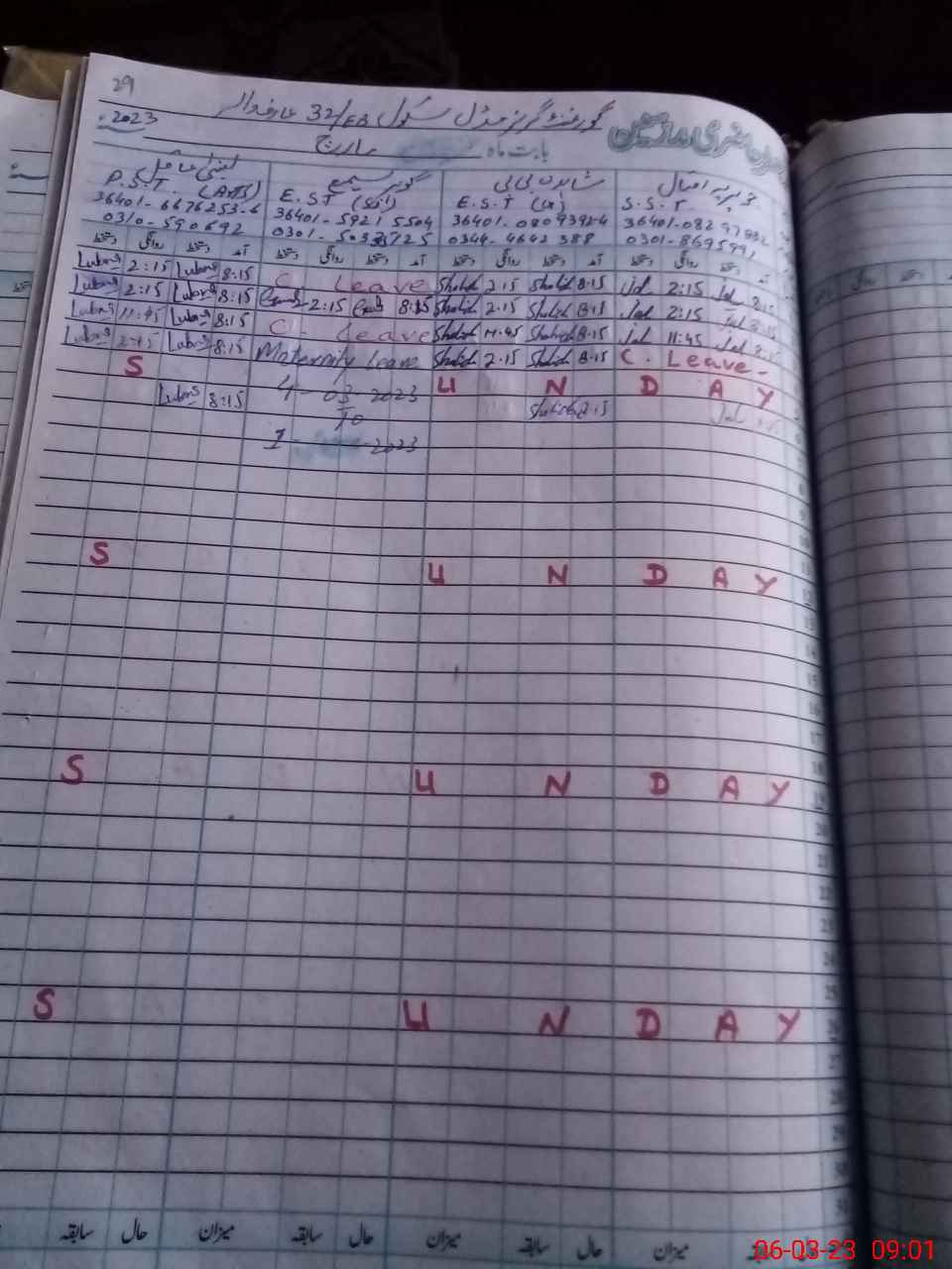 | 36**** | MU**** AS**** | NAIB QASID | Regular | 2 | 0 | 7 | 0 | 0 | 0 | 0 | 0 | 2 | Absent (Un-Authorized) |