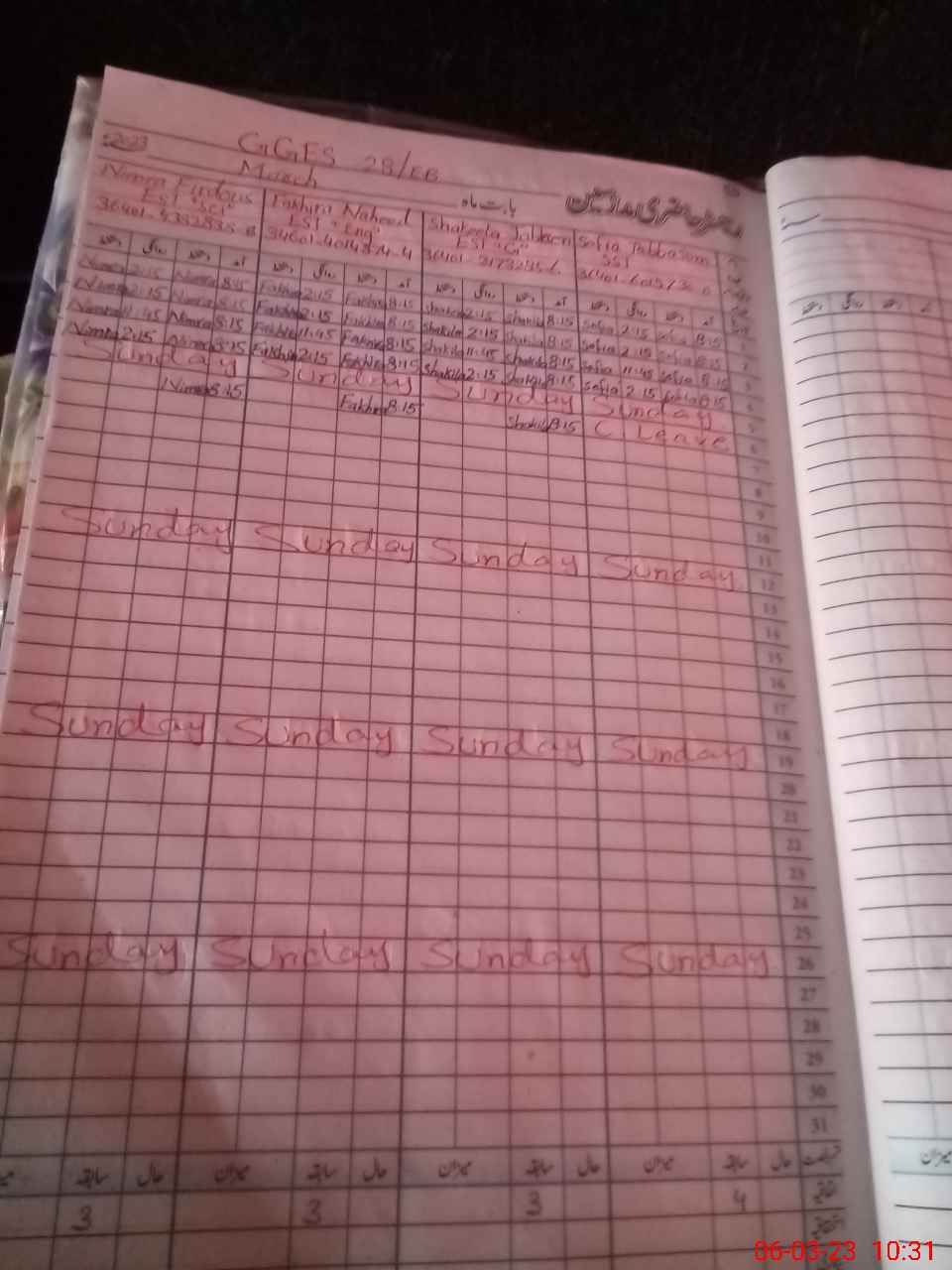 | CNIC | Full Name | Designation | R/C | Absence During Last Calender Month |