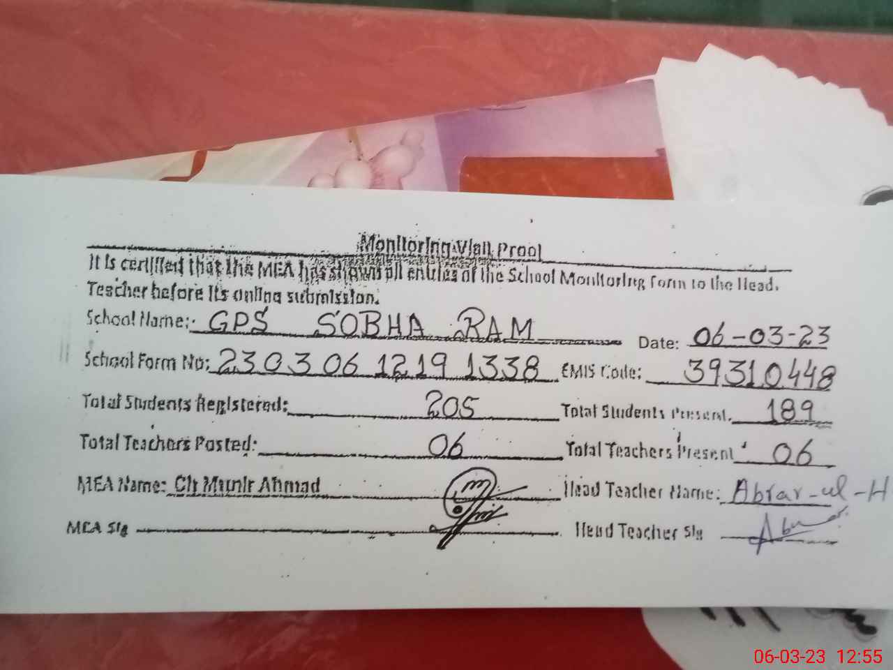 | EMIS Code: 39310448 | Name of School: GPS SOBHA RAAM | |||