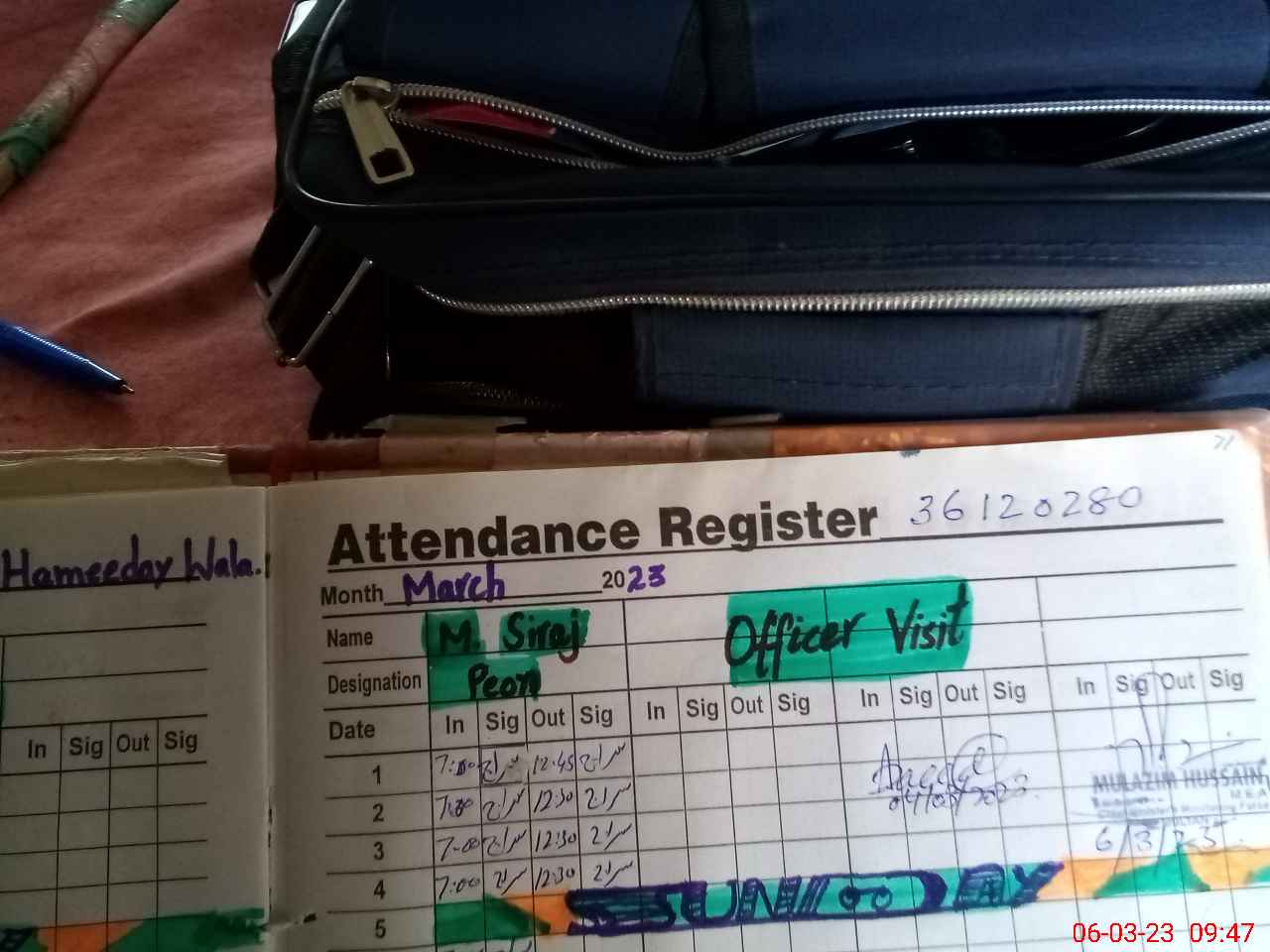 | Attendance Register | Head Teacher | MEA with School | Visit Proof |