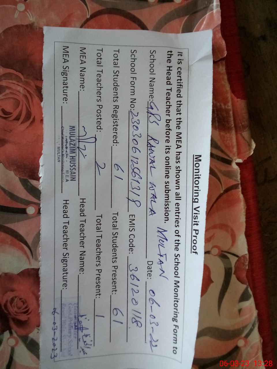 | EMIS Code: 36120118 | Name of School: GPS RAWAL WALA MOZA QAISAR PUR SHUJABAD | |||