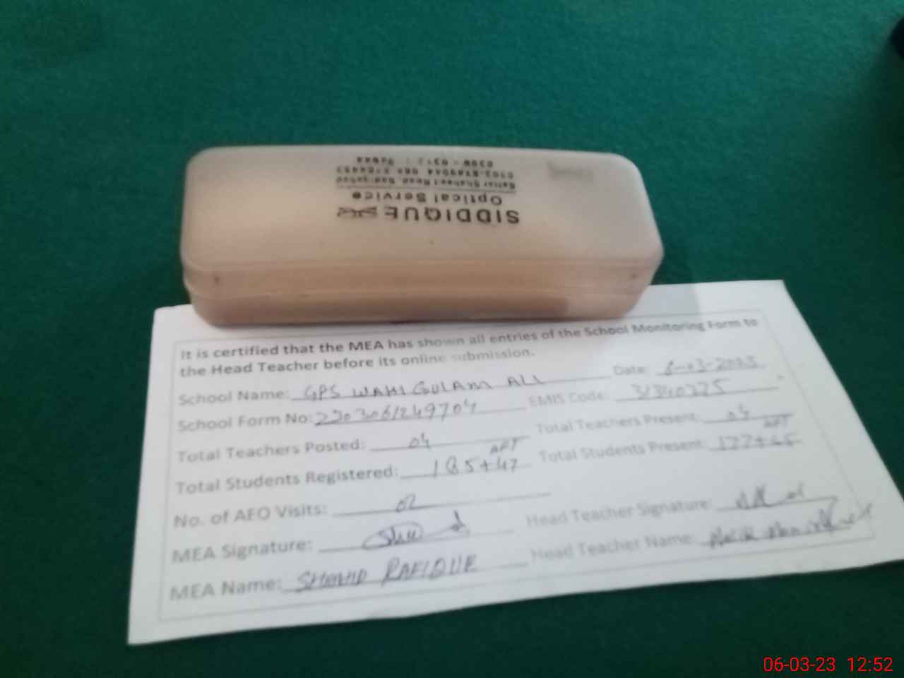| EMIS Code: 31340275 | Name of School: GPS WAHI GHULAM ALI | |||