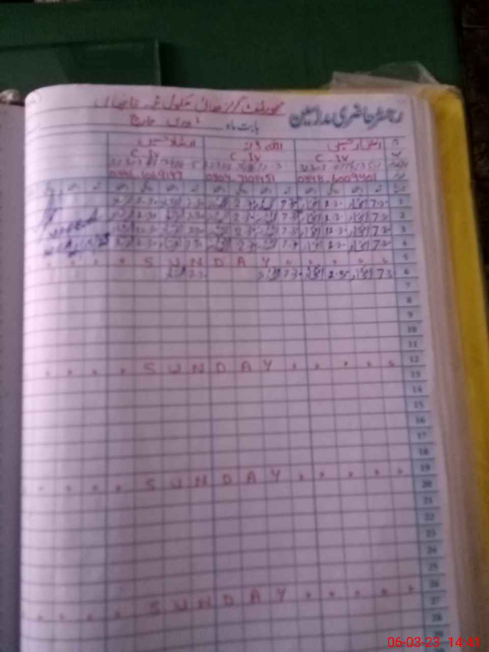 | CNIC | Full Name | Designation | R/C | Absence During Last Calender Month |