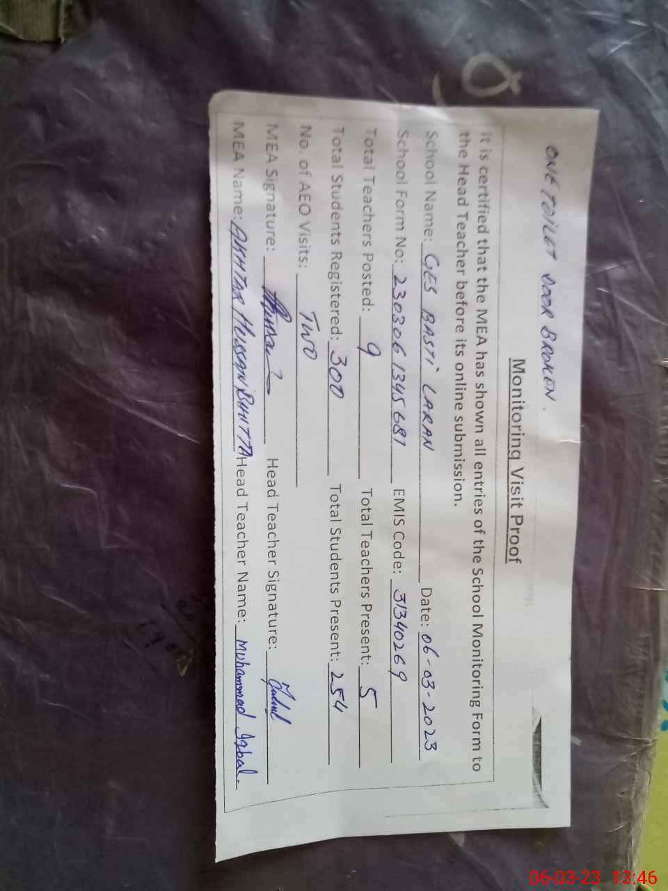 | EMIS Code: 31340269 | Name of School: GES BASTI LARAN | |||