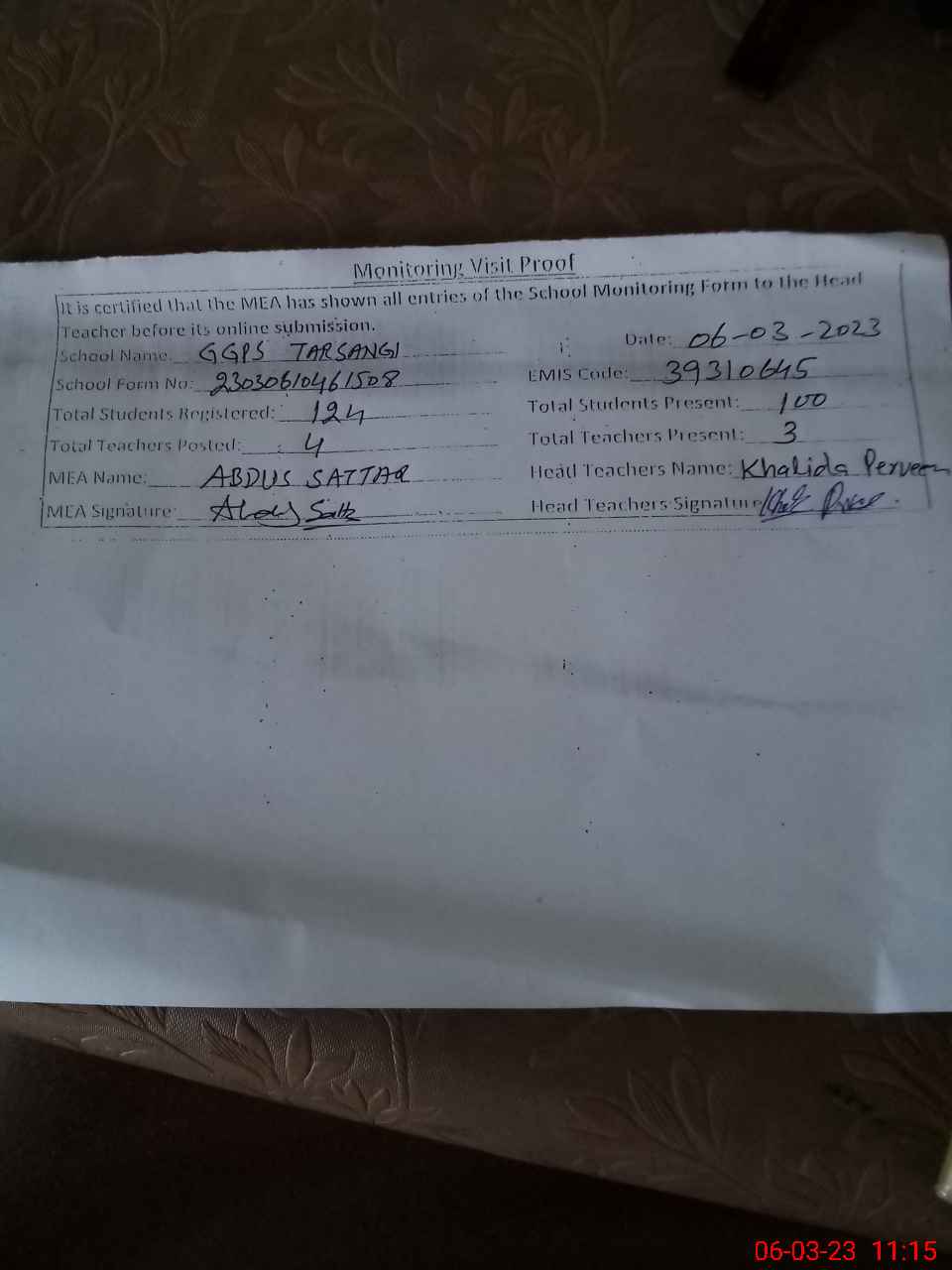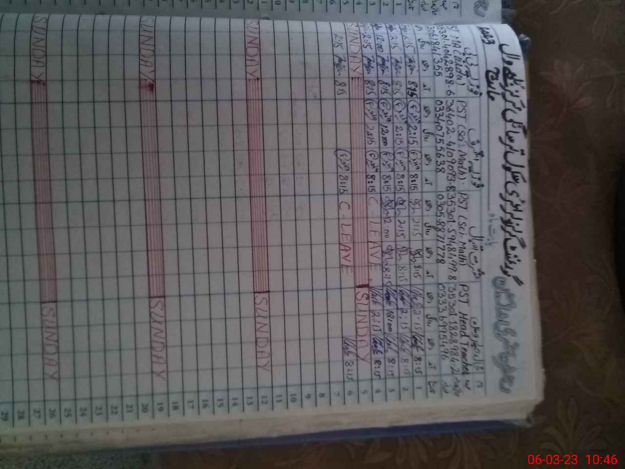 | Name: KH**** PE**** Designation: (School Headmaster's/Headmistress's) PST Phone/Cell Number: 03**** |