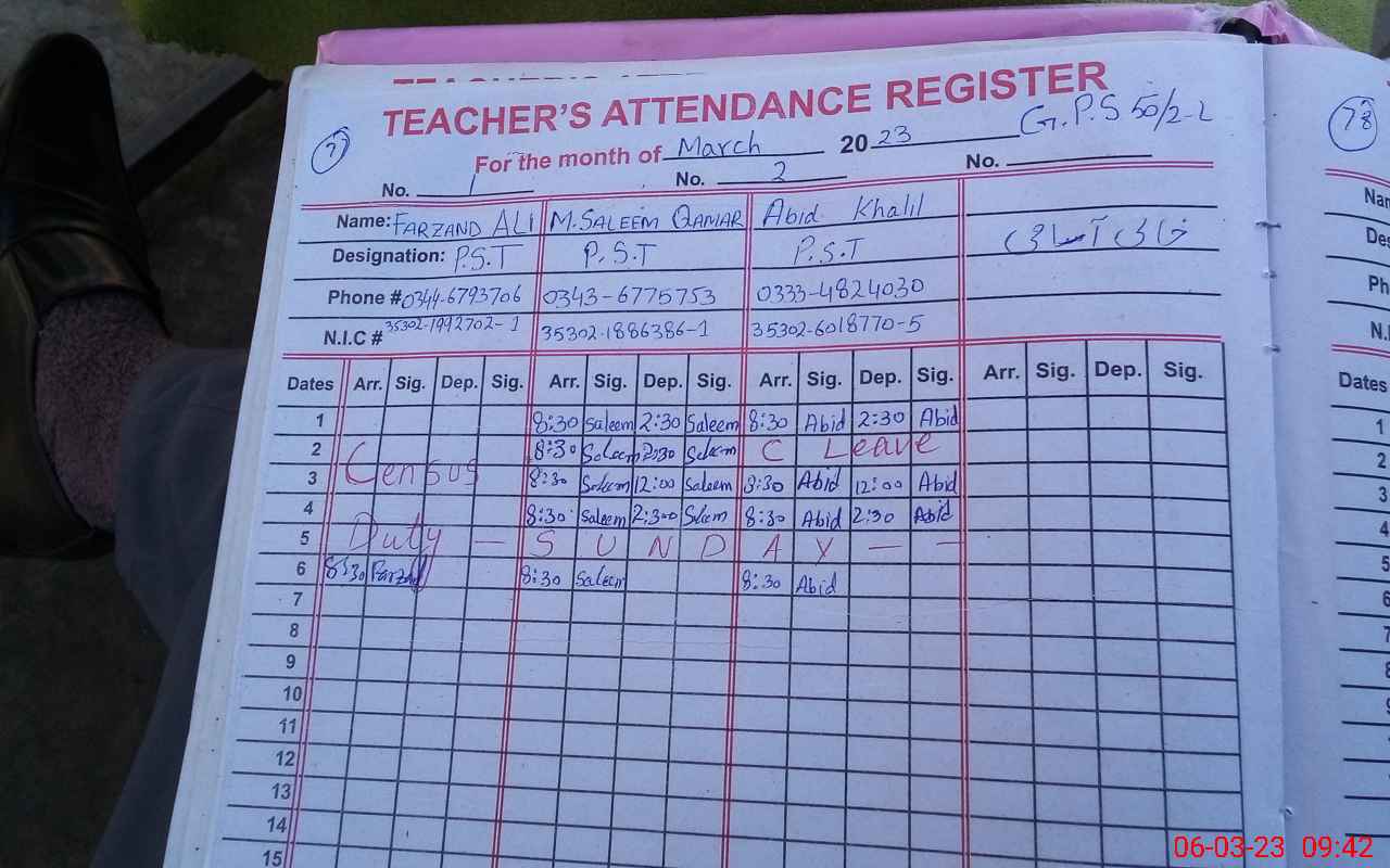 | Name: Sh**** Bi**** Designation: (School Headmaster's/Headmistress's) PST Phone/Cell Number: 03**** |