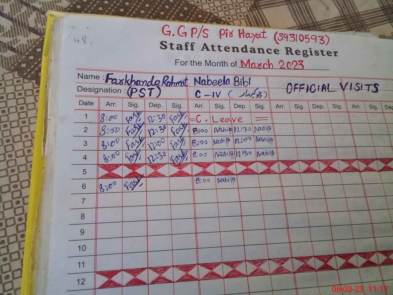 | Name: Fa**** Re**** Designation: (School Headmaster's/Headmistress's) PST Phone/Cell Number: 03**** |