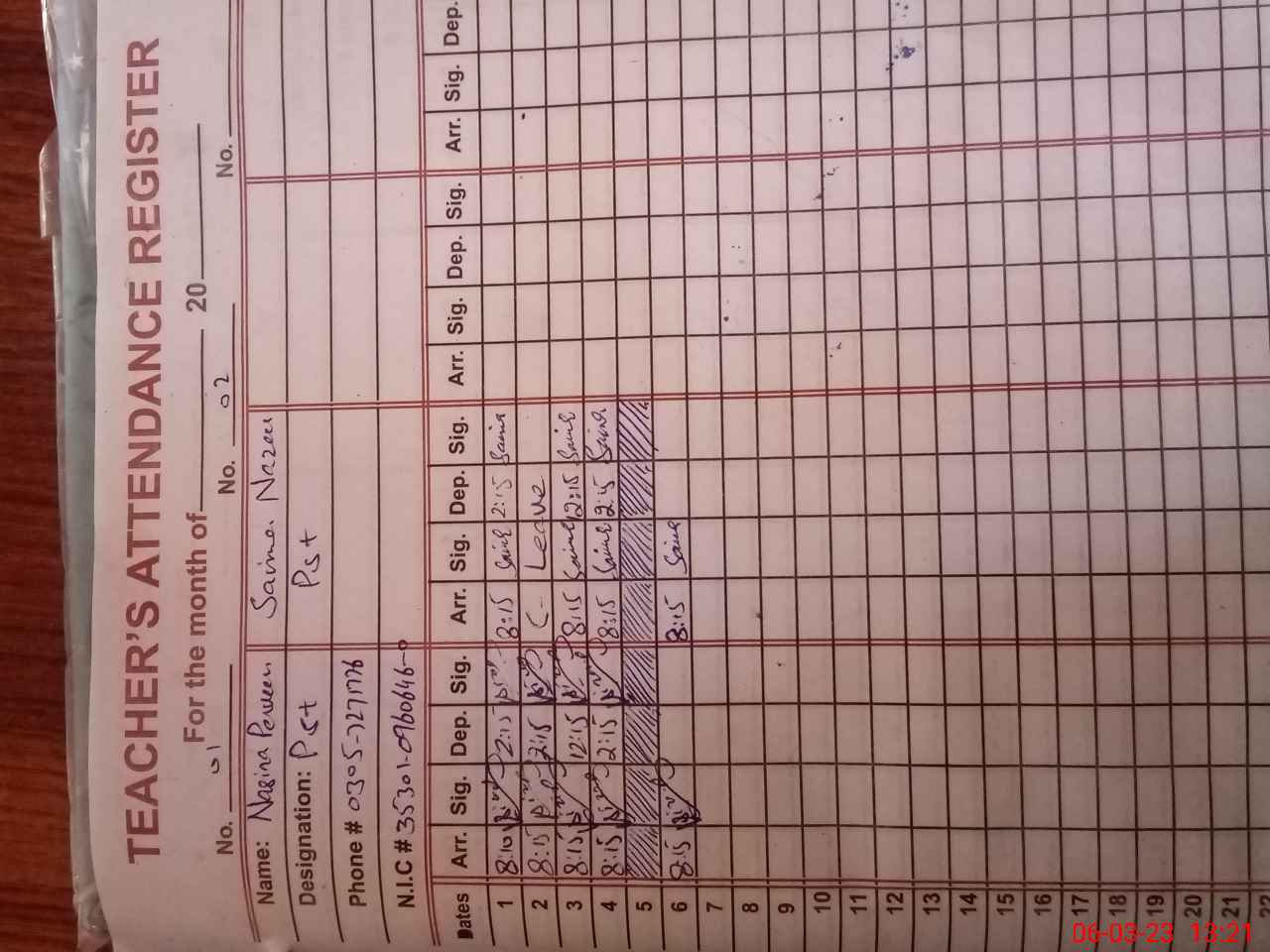 | Name: NA**** PE**** Designation: (School Headmaster's/Headmistress's) ESE (ARTS) Phone/Cell Number: 03**** |