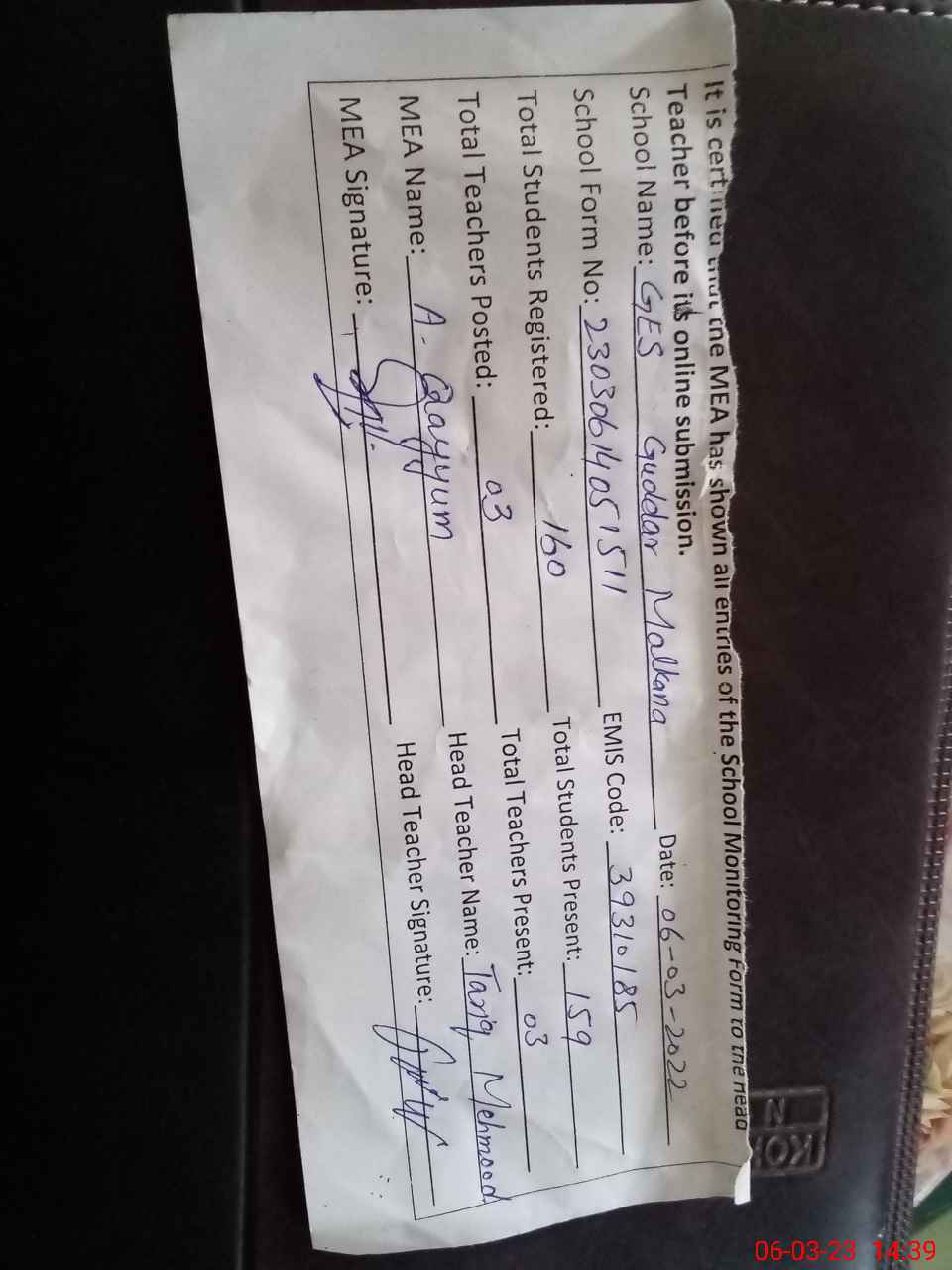 | EMIS Code: 39310185 | Name of School: GES GUDAR MALKANA | |||
