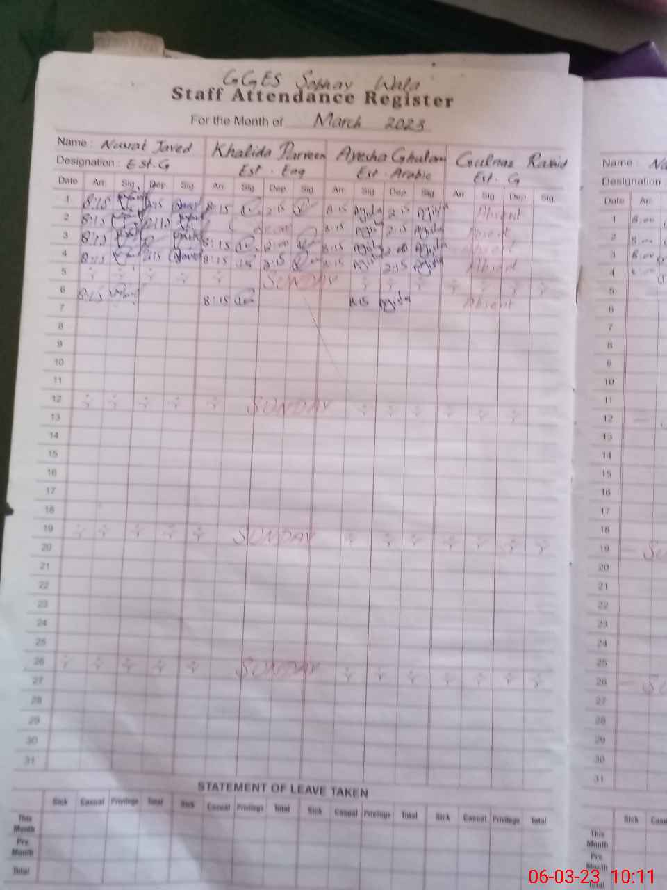 | 35**** | Gu**** Ra**** | Regular | 0 | 0 | 28 | 0 | 0 | 0 | 0 | 0 | 0 | Absent (Un-Authorized) | |