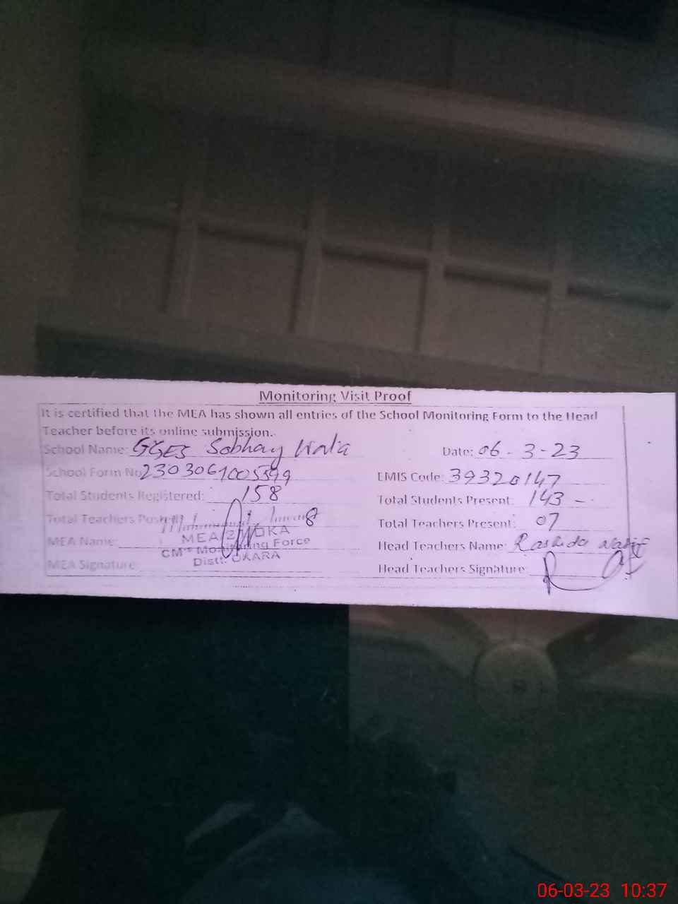 | EMIS Code: 39320147 | Name of School: GGES SOBAY WALA | |||