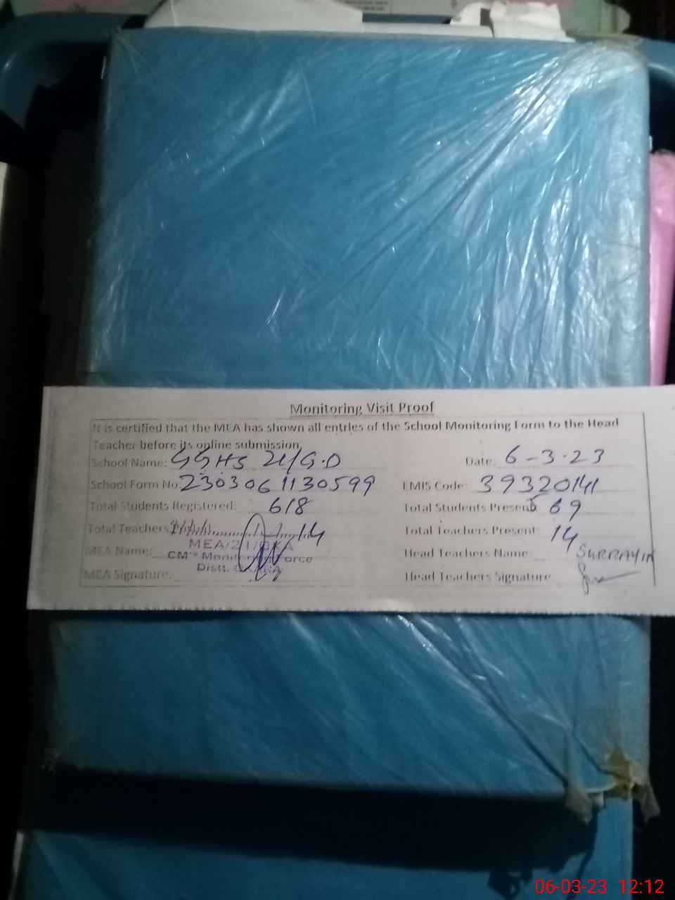 | Attendance Register | Head Teacher | MEA with School | Visit Proof |