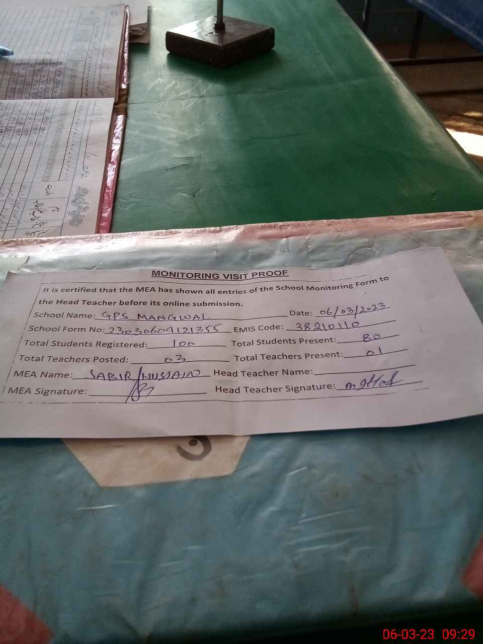 | EMIS Code: 38210110 | Name of School: GPS MANGWAL | |||