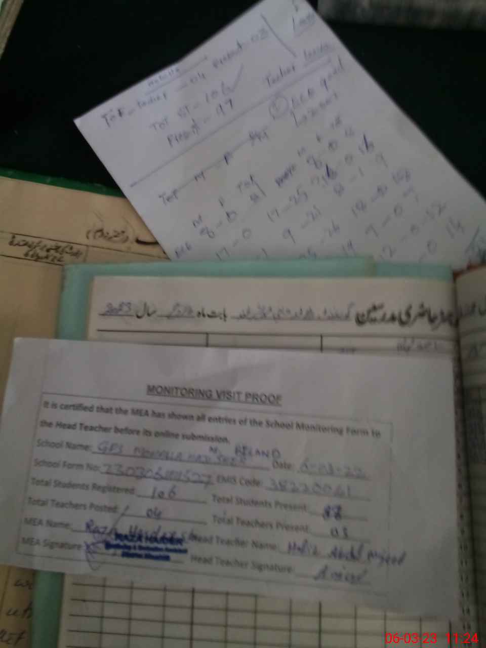 | Attendance Register | Head Teacher | MEA with School | Visit Proof |