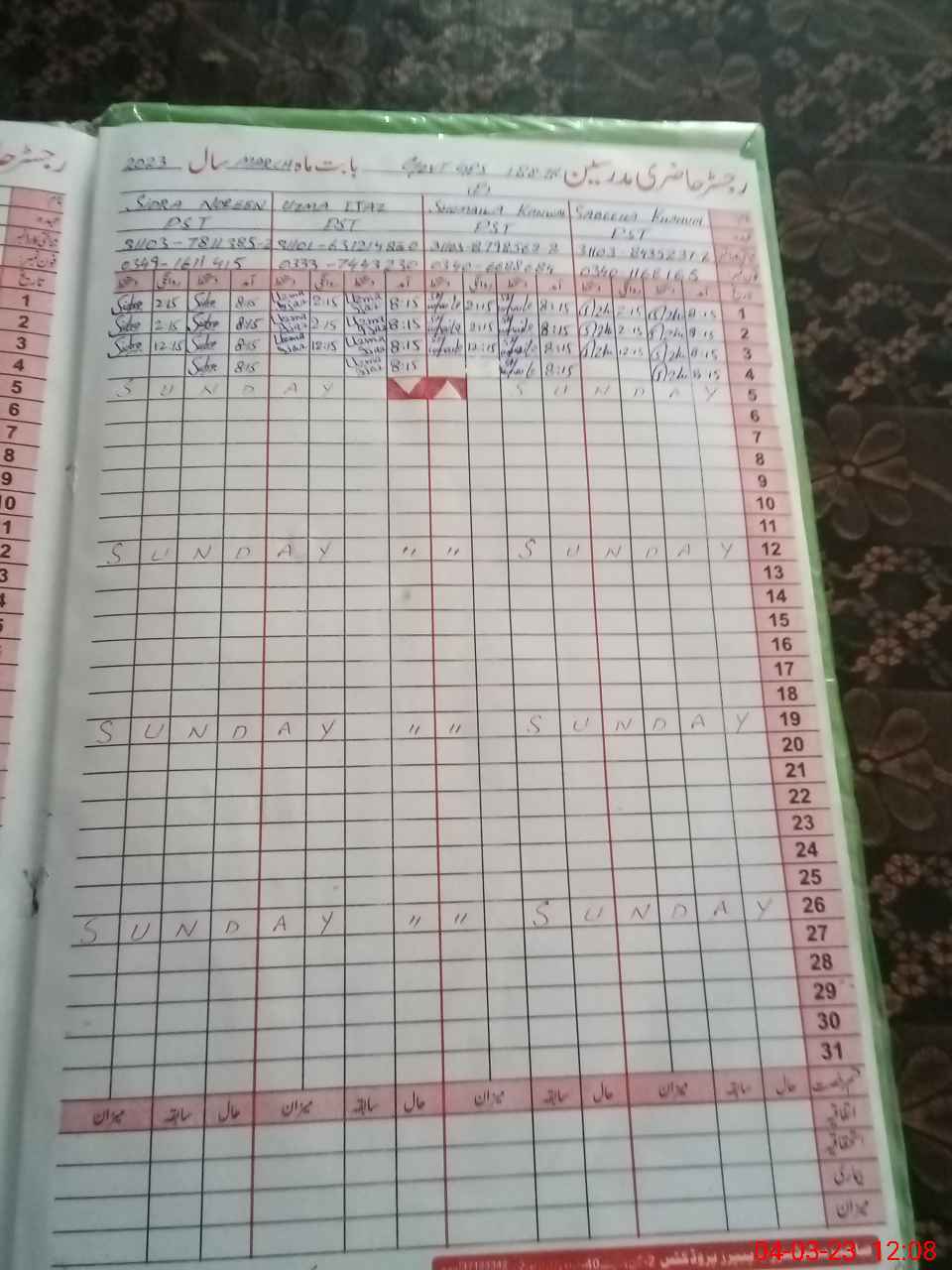| Name: Sa**** Kh**** Designation: (School Headmaster's/Headmistress's) PST Phone/Cell Number: 03**** |