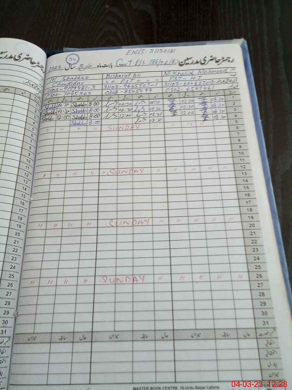| Name: Mu**** Kh**** Designation: (School Headmaster's/Headmistress's) PST Phone/Cell Number: 03**** |